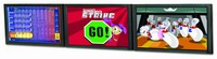 LCD touch-screens combine scoring input functionality, score views, audio, and intercom service into one sleek, modern design. A 12" (33.1 cm) LCD screen displays five and 10 frame views for up to eight bowlers simultaneously. Touch-screen technology supports name entry, score correction, language selection, skip bowler, move bowler, bowler up, and many more functions. LCD touch-screens can be attached to floor mounted pedestals (two per pedestal) or integrated directly into Brunswick tabletop seating to maximize your center's available space. The screen bezels feature a glow-in-the-dark effect. LCD widescreens.